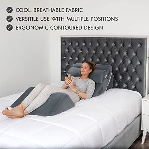 4 Pcs Orthopedic Bed Wedge Pillow Set – Post Surgery, Relaxing, Back & Adjustable Head Support Cushion – Triangle Memory Foam Pillow for Acid Reflux, Sleeping, Reading, Leg Elevation, Snoring (GREY)