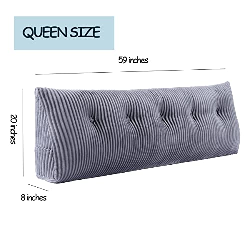 Specification: Activance Large Triangular Headboard Wedge Bed Rest Reading Pillow Backrest Positioning Support Bolster Cushion with Removable Cover (Grey, Queen: 59x8x20 Inches)