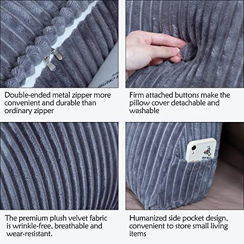 HIGH QUALITY MATERIAL: Made of premium three-dimensional velvet fabric, the triangular backrest pillow’s cover is breathable, delicate touch and wear-resistant; filled with upgraded environmental-friendly 15D polyester fiberfill, with excellent density and super high resilience.