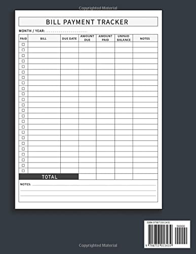 Specification: Bill Payment Tracker: bill tracker notebook | monthly bills organizer | monthly bills planner | bill tracker