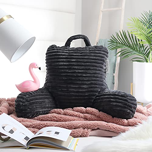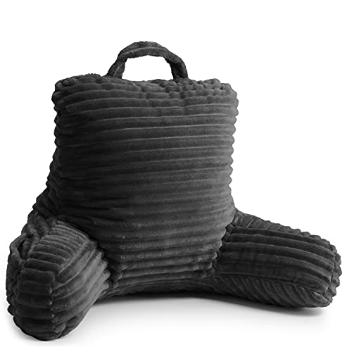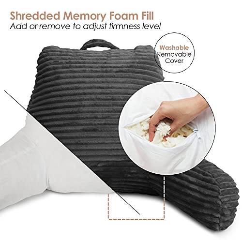 Cut Plush Striped Reading Pillow for Kids & Teens, Medium Back Pillow, Back Support Pillow, Shredded Memory Foam Bed Rest Pillow with Arms, Dark Gray