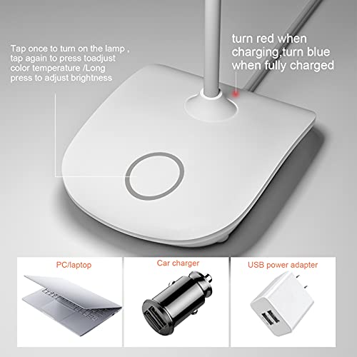 Specification: DEEPLITE Battery Operated Desk Lamp, LED Desk Light 3 Lighting Modes Stepless Dimming, Table Lamp 5W Touch Control Eye Caring, Flexible Gooseneck, Portable Reading Light for Dorm Study Office Bedroom