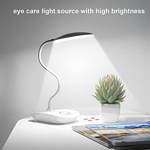 DEEPLITE Battery Operated Desk Lamp, LED Desk Light 3 Lighting Modes Stepless Dimming, Table Lamp 5W Touch Control Eye Caring, Flexible Gooseneck, Portable Reading Light for Dorm Study Office Bedroom