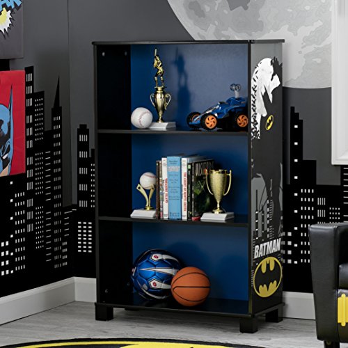 Complete your Bat cave with this DC Comics Batman Deluxe 3-Shelf Bookcase from Delta Children. The three spacious shelves are at the perfect height level to allow kids to easily store books, photos and toys. The colorful artwork of Batman and Gotham City on the side panels packs some cool style that will encourage growing super heroes to cleanup in record time. Built from sturdy wood, this durable bookcase will be able to withstand years of use, and is perfect as storage in the bedroom, playroom, living area-pretty much anywhere.