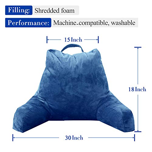 FASO Reading Pillow with Arms for Sitting in Bed,Adult Back Support for Bed with arms,Backrest Lounge Cushion with Pockets for Reading/Watching TV-18inch(Navy Blue)