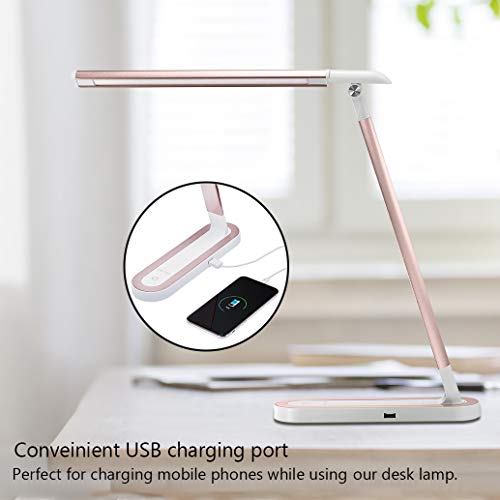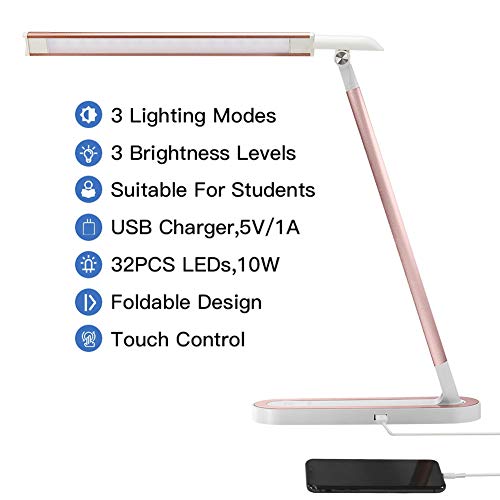 Specification: HDTIME-Desk Lamp with USB Charging Port, 3 Lighting Modes 3 Brightness Levels Desk Light,Touch Control Adjustable Led Kids Desk Lamp Pink for Reading,Study,Office