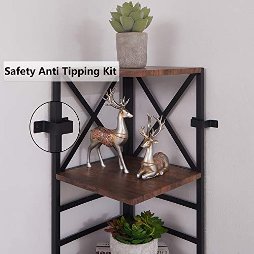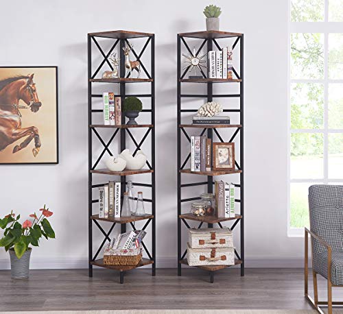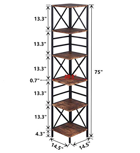 Specification: HOMISSUE 6 Tier Industrial Corner Shelf Unit, Tall Bookcase Storage Display Rack for Home Office, Rustic Brown