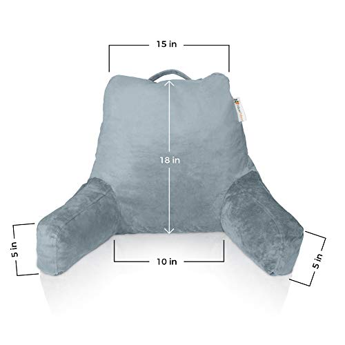 COMFORTABLE & BREATHABLE: Our back reading pillow is manufactured with shredded shapeable clusters of foam, which allows for a better airflow, in addition to a flexibility, to personalize the molding of the pillow, to the comfort of each individual. Its soft plush gray velour cover, makes the pillow extremely cozy and comfortable to snuggle up on, no matter where you are in the home