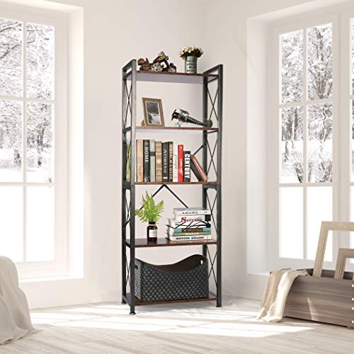 Specification: LAVIEVERT 5 Tier Industrial Bookshelf Vintage Bookcase Shelf Organizer Rustic Wood and Metal Storage Rack for Home, Office, Garage, Kitchen, Living Room – Rustic Brown