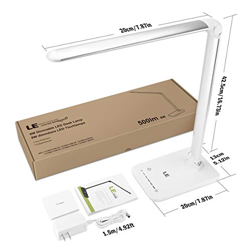 Specification: LE Dimmable LED Desk Lamp, 7-Level Brightness Adjustable, Soft Touch Dimmer, Eye Care Daylight Natural Light, High Intensity Office Task Lamp for Reading, Study, Computer Work and More (Silver White)