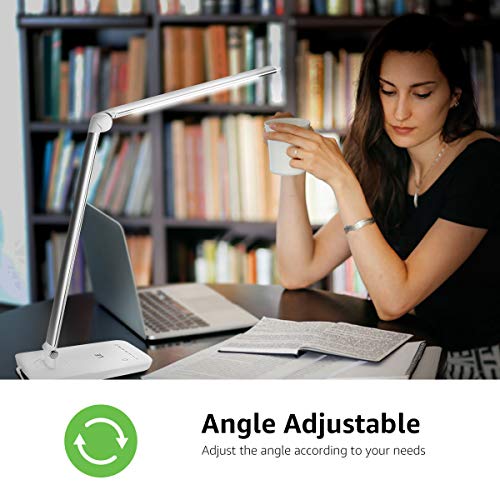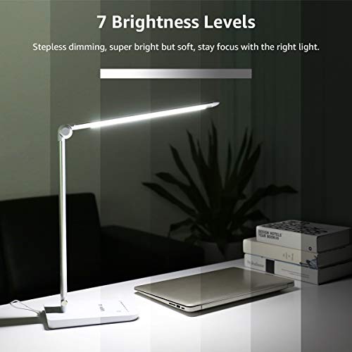 LE Dimmable LED Desk Lamp, 7-Level Brightness Adjustable, Soft Touch Dimmer, Eye Care Daylight Natural Light, High Intensity Office Task Lamp for Reading, Study, Computer Work and More (Silver White)