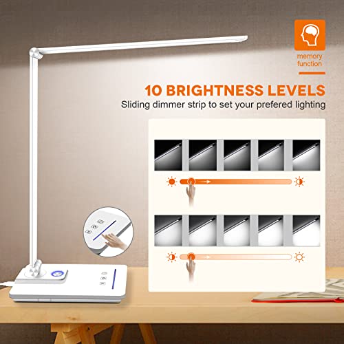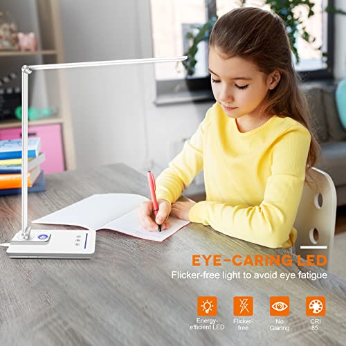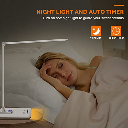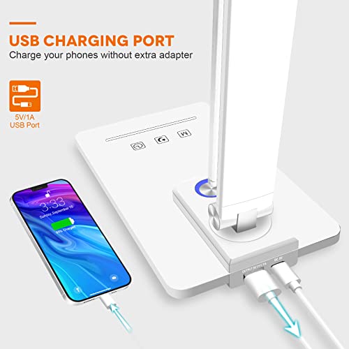LED Desk Lamp,Eye-Caring Desk Light, 5 Light Modes, 6 Brightness Levels, Touch Control with USB Charging Port, Sleep Night Light, 45 Mins Auto Timer,Table Lamp for Home Office Dorm-White (White)
