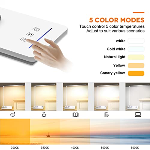 Specification: LED Desk Lamp,Eye-Caring Desk Light, 5 Light Modes, 6 Brightness Levels, Touch Control with USB Charging Port, Sleep Night Light, 45 Mins Auto Timer,Table Lamp for Home Office Dorm-White (White)