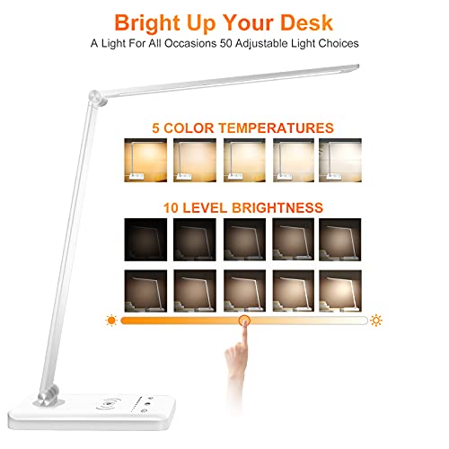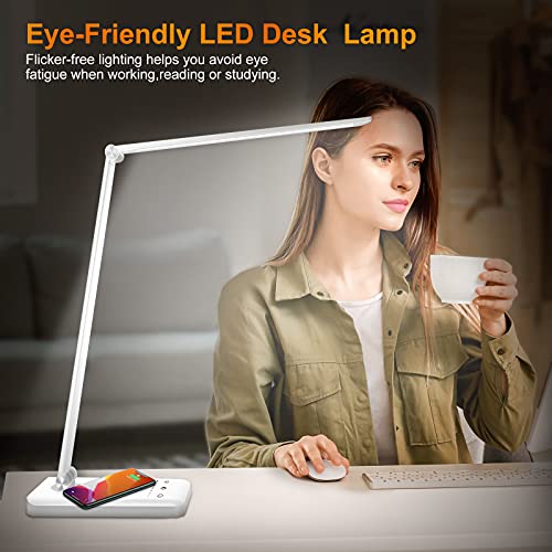 LED Desk Lamp, Wireless Charger, Dimmable, USB Charging Port,5 Modes, Reading Light for Home, Office, Touch Control, Auto-Off Timer Lamps (Silver 2.0)