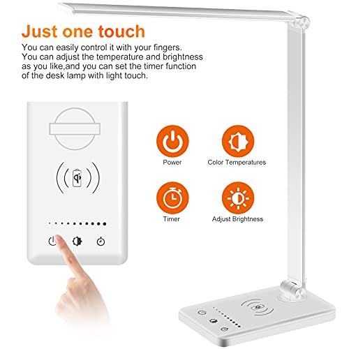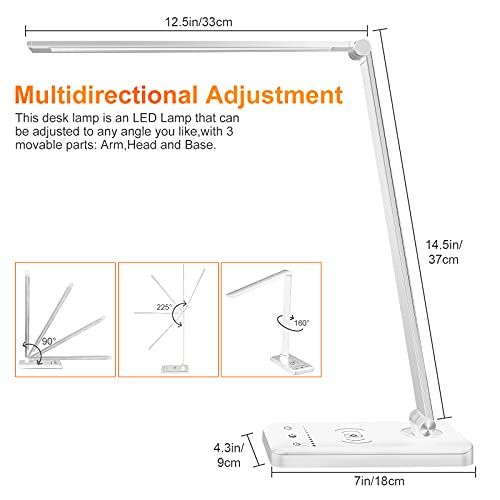 Specification: LED Desk Lamp, Wireless Charger, Dimmable, USB Charging Port,5 Modes, Reading Light for Home, Office, Touch Control, Auto-Off Timer Lamps (Silver 2.0)