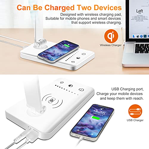 【Wireless Charging & USB Charging Port Desk Lamp】This LED desk lamp with Wireless charging can fast charge compatible iPhone and Samsung devices up to 10W. Upgraded built-in Max 5V/2.1A USB Charging Port output,also charging your mobile devices conveniently. We provide high quality 12V/1.5A Power Adapter,charging more faster and lighting more stable (Power Adapter included in the package).
