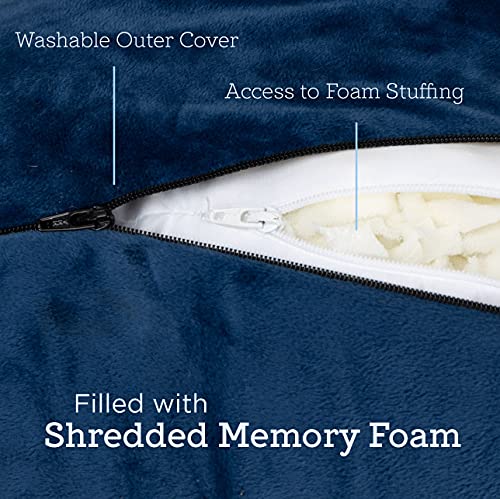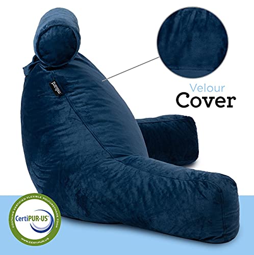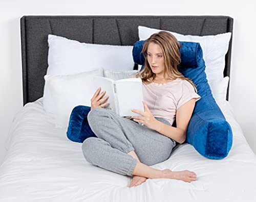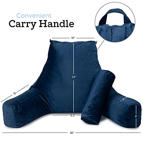 Milliard Extra Large Reading Pillow with Shredded Memory Foam, Wedge Back Rest Pillow for Sitting in Bed with Removable Velour Cover –24×18 inches (Navy Blue)