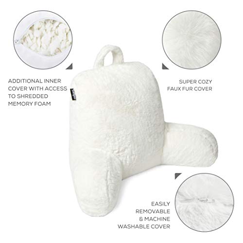 Milliard Reading Pillow with Shredded Memory Foam, Back Rest Pillow for Sitting in Bed with Faux Fur Removable Cover –18×15 inches (White)