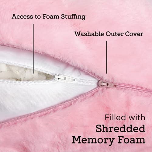 Milliard Reading Pillow with Shredded Memory Foam for Kids, Sit Up Floor Gaming Chair Bed Pillow with Faux Fur Washable Cover –14×13 inches (Pink)
