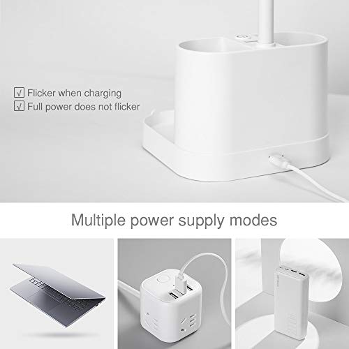 Mubarek Office Lamp, 8w 3 Modes Battery Operated Lamp, White Desk Lamp for Desk, Study Lamps for Desk, Desk Lamps for Bedrooms, Dimmable Office Light, Bright Desk Lamp, USB Desk Lamp, Modern Desk Lamp