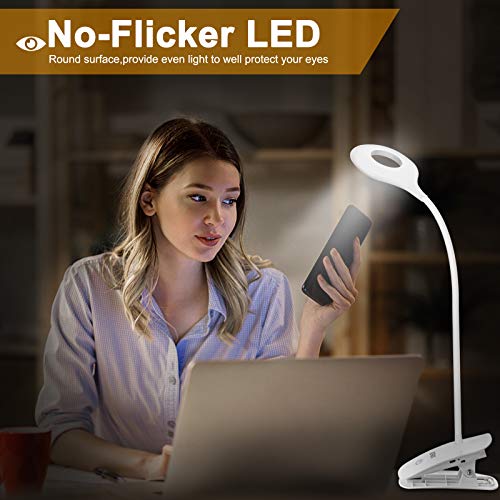 【360°Flexible Clip On Lamp】2.7 inch wide clamp width attaches firmly to desk, table, bed headboard. 360° Flexible Gooseneck arm can be adjusted to any angle you like.