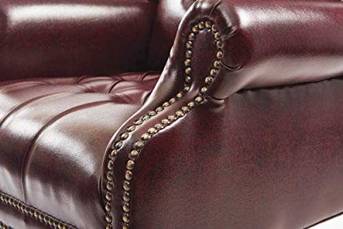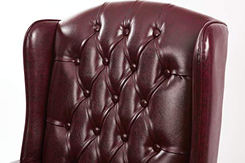 Office Star TEX Traditional Queen Anne Style Chair with Thick Padded Seat and Lumbar Support Back with Royal Cherry Finish Wood Legs, Jamestown Oxblood Vinyl