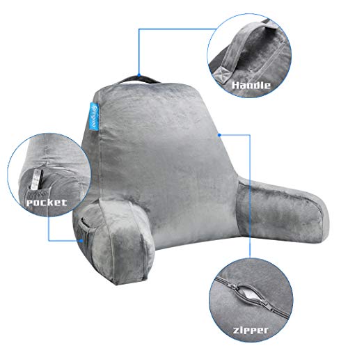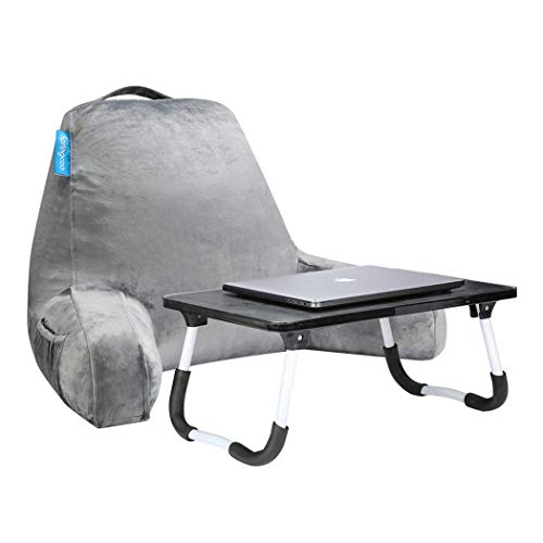 Springcoo Reading Pillow-Bonus Lap Desk-Shredded Foam TV Pillow with Removable Cover-Great Support for Reading, Relaxing, Watching TV -18IN-Gray