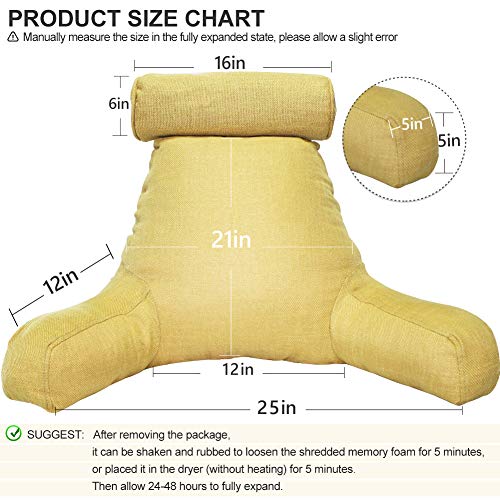 Specification: SUNSIDE Reading Pillow for Sitting in Bed with Detachable Neck Roll,Back Support Pillows with Arms,Lounge/Study/Gaming/TV/Pillow with Washable Cotton Linen Cover for Adult