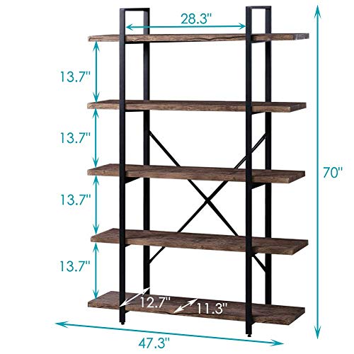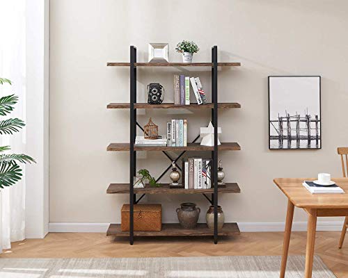 Specification: SUPERJARE 5-Tier Bookshelf, Open Etagere Bookcase with Metal Frame, Book Shelf Book Case with Storage Display Shelves, Distressed Brown